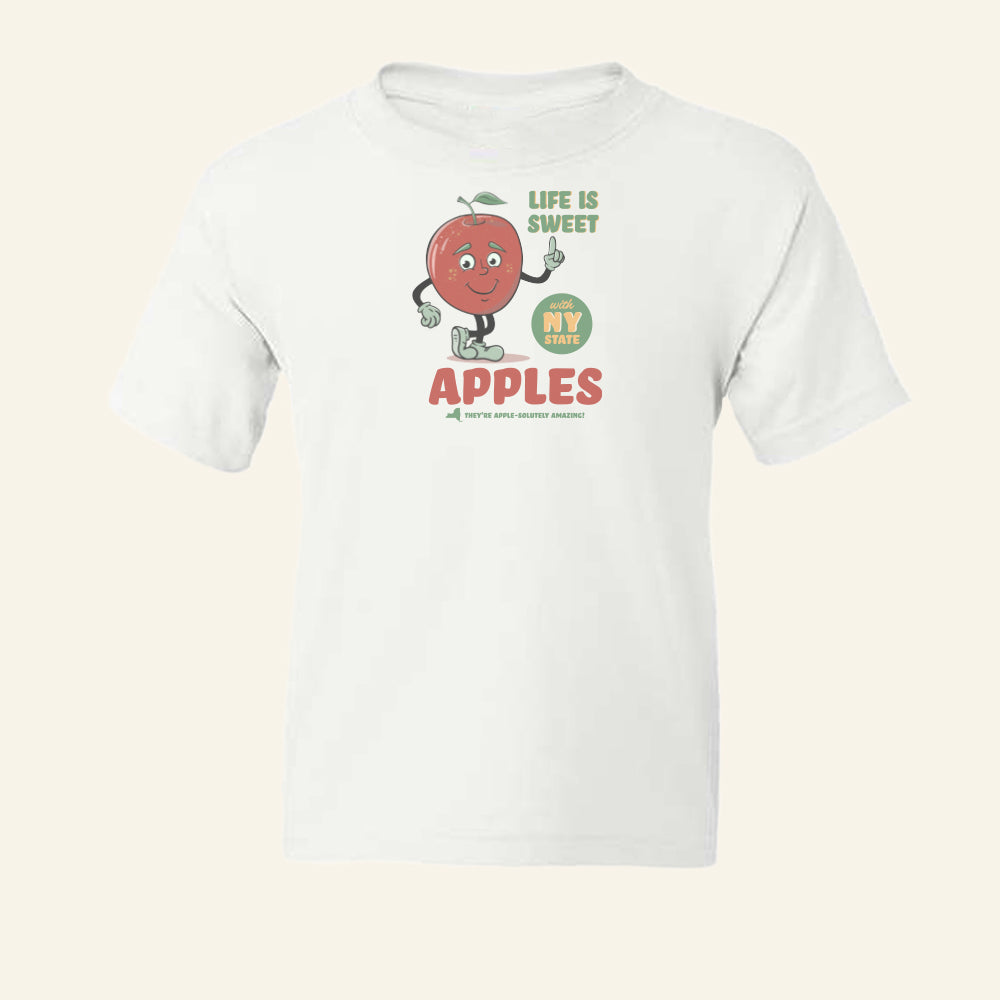 Fun Kids New York Apples Themed Youth Tee Shirt - Upstate NY Souvenir and Gift Idea